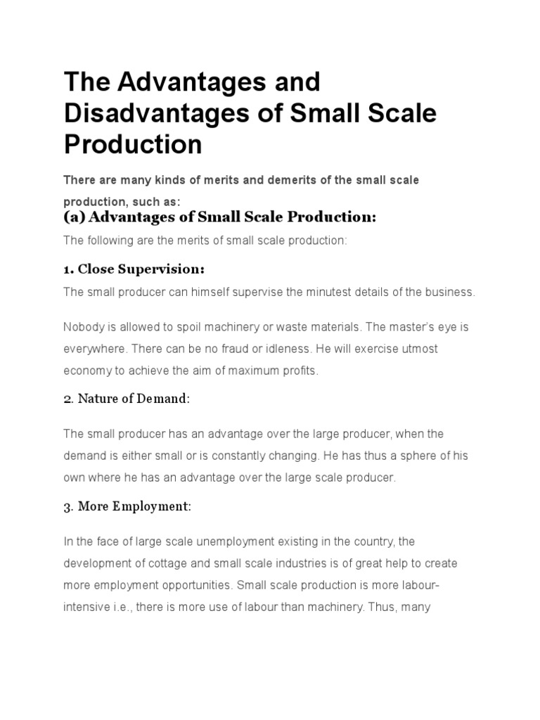 Advantages And Disadvantages of Small Scale Production. Click here to get an answer to your question Advantages and disadvantages of small scale production bhagyapatelsha7855 bhagyapatelsha7855 29062018. Disadvantages of small scale industries.
