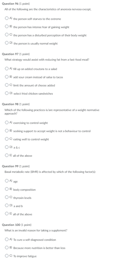 Solved 1 Which Of The Following Exemplifies How Anorexia Chegg Com