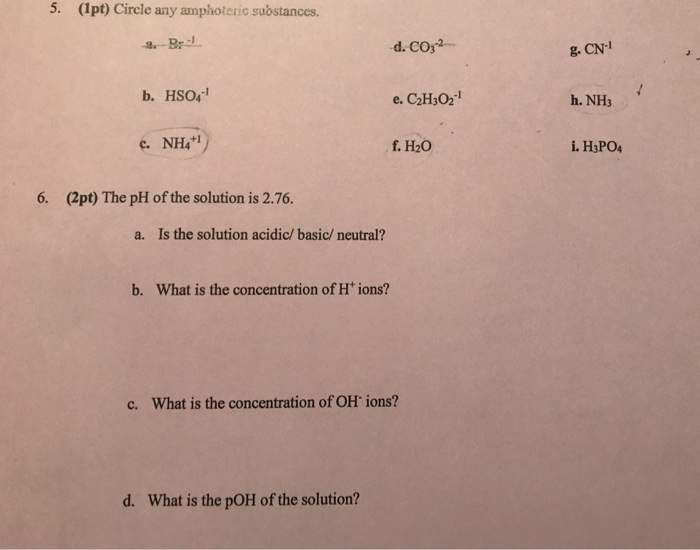 Solved 5 1pt Circle Any Amphoteric Substances G Cn B Chegg Com